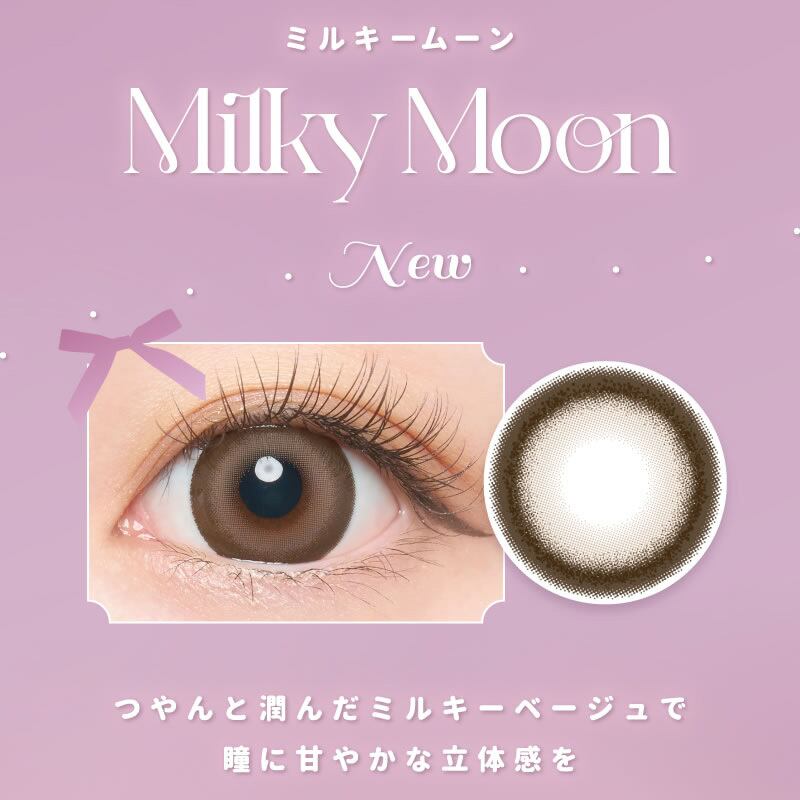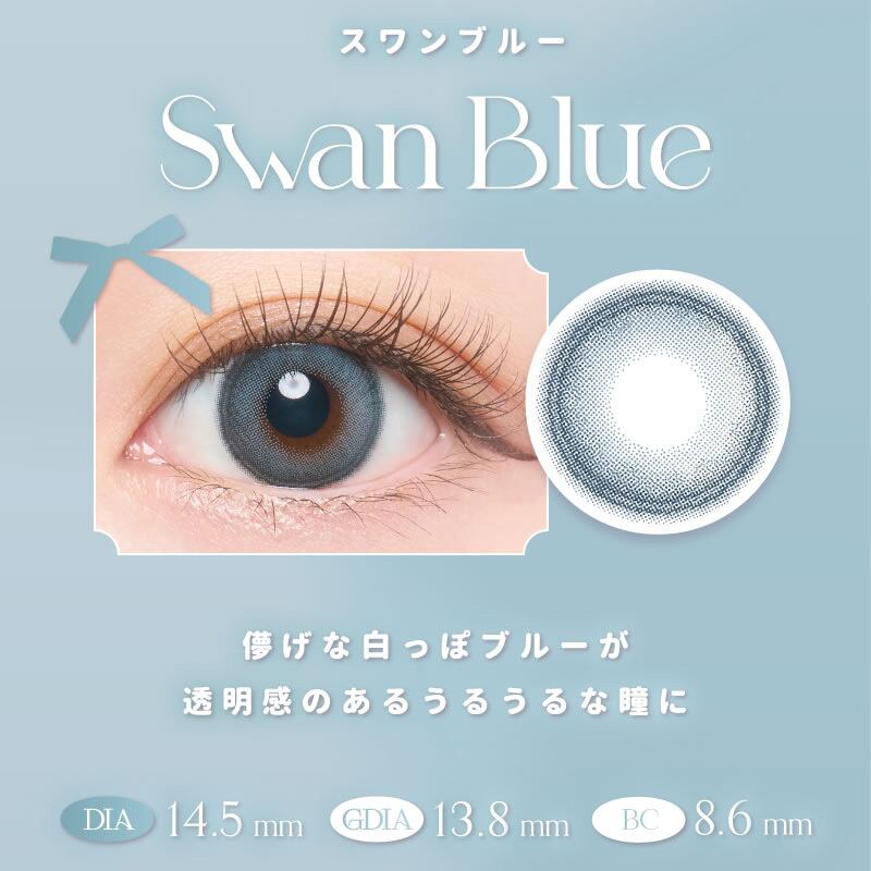 益若つばさ(つーちゃん)イメージモデルのマンスリーカラコン。ミルキームーン、スワングレー、スワンブルー、アーモンドの全4色。