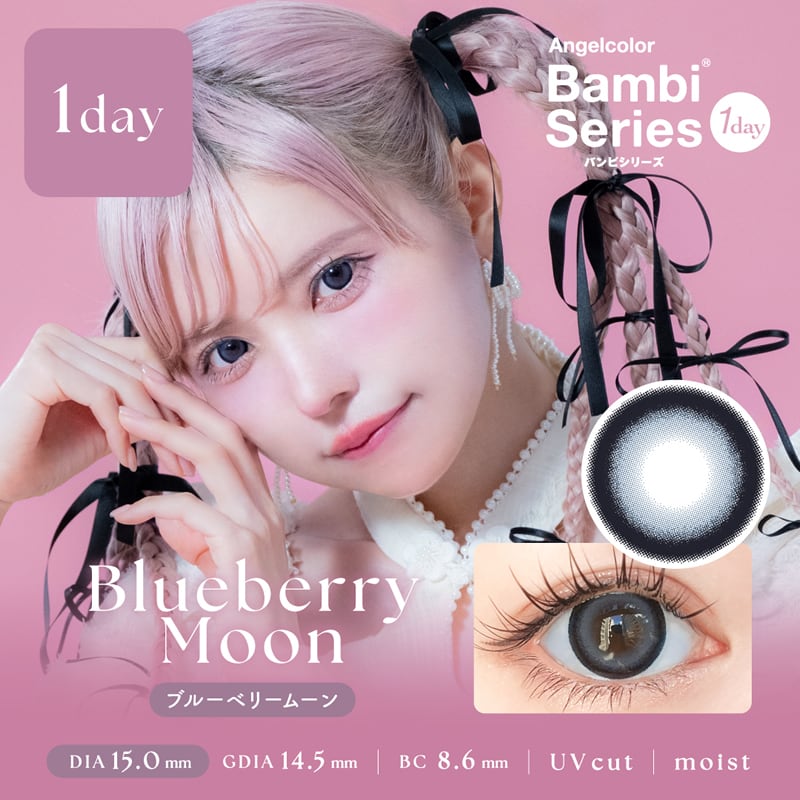 益若つばさ(つーちゃん)イメージモデルのワンデーカラコン。スノーココア、スノーパープル、ハニームーン、ブルーベリームーン、セサミムーン、スワングレー、スワンブルー、レモンヘーゼル、ローズべージュ、アーモンド、ショコラ、パールグレー、ミルクベージュ、クリームピンク、カシスブラウンの全15色。