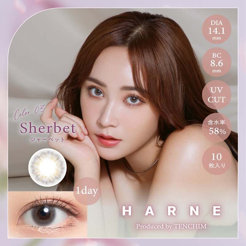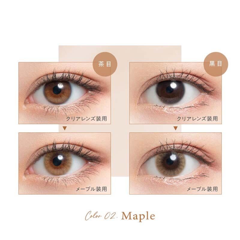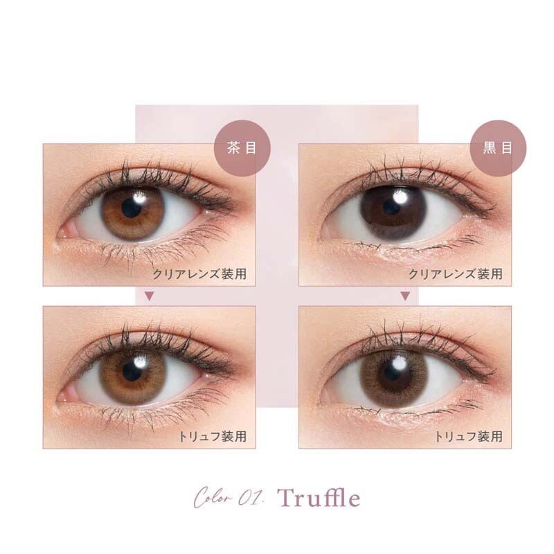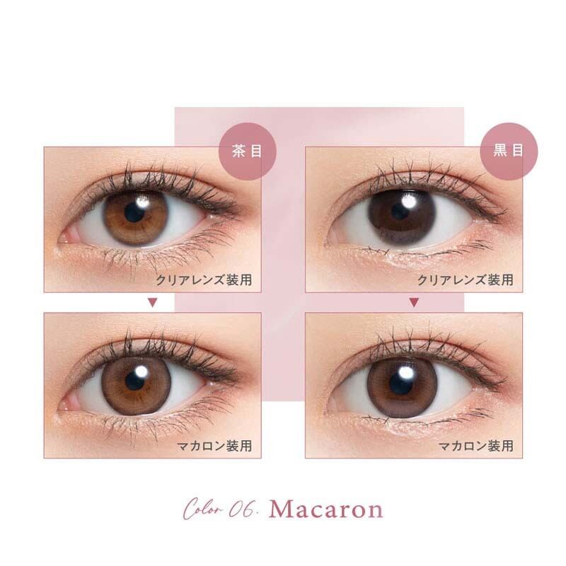 橋本甜歌(てんちむ)イメージモデルのワンデーカラコン。フィナンシェ、チャイナブルー、トリュフ、メープル、シャーベット、カモミール、プディング、マカロンの全8色。