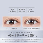 宮脇咲良イメージモデルの乱視用カラコン。ブラウンバニー、ドーリッシュグレー、ドーリッシュブラウン、ダズルグレーの全4色。