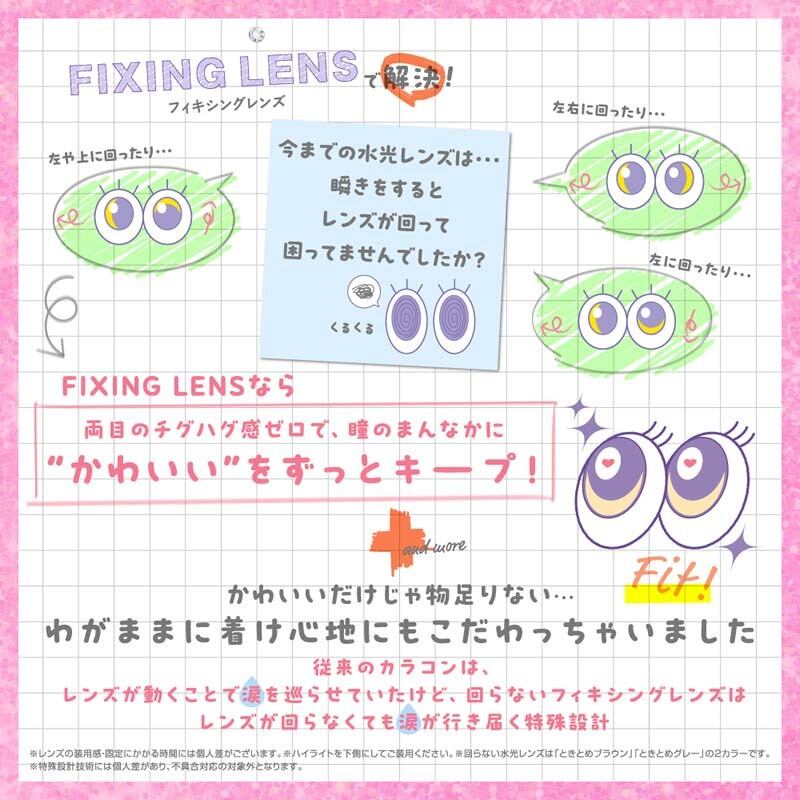 齊藤なぎさイメージモデルのマンスリーカラコン。ときとめブラウン、ときとめグレー、ずるモテベージュ、きらゆめブラウン、いとおしブラック、ぬけがけグレージュの全6色。