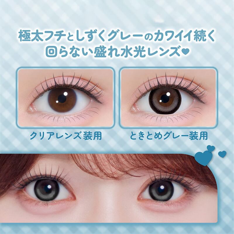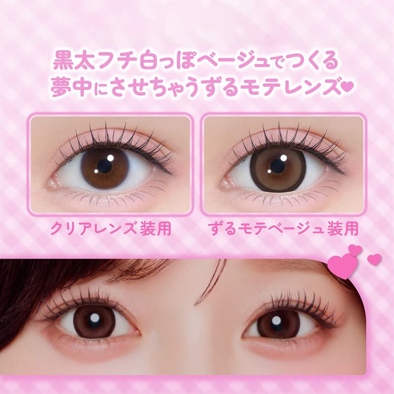 齊藤なぎさイメージモデルのマンスリーカラコン。ずるモテベージュ、きらゆめブラウン、ときとめブラウン、ときとめグレーの全4色。